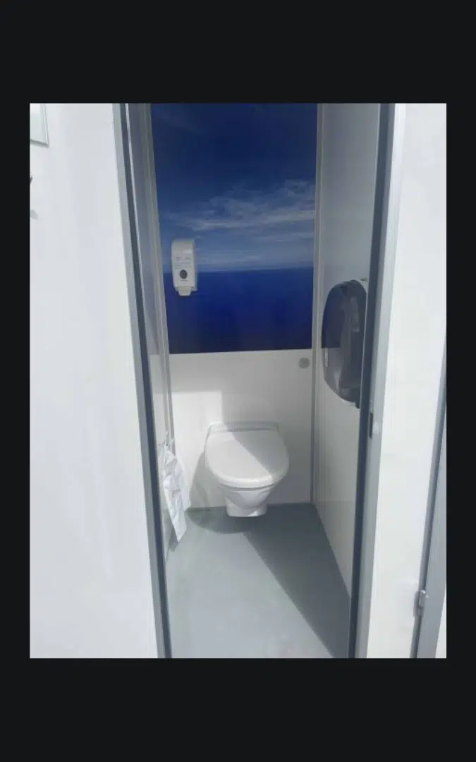 Vores ComfortClass Vakuum modul er udstyret med 8 vakuumtoiletter med separate indgange fra det fri. Hvert toiletrum er udstyret med gel hånddesinfektions dispensere, for at undgå papiraffald og opretholde et højt hygiejne niveau. Endvidere er modulet forsynet med dispensere til gigant toiletpapirruller, som kan have op til 600m toiletpapir i hver rulle.