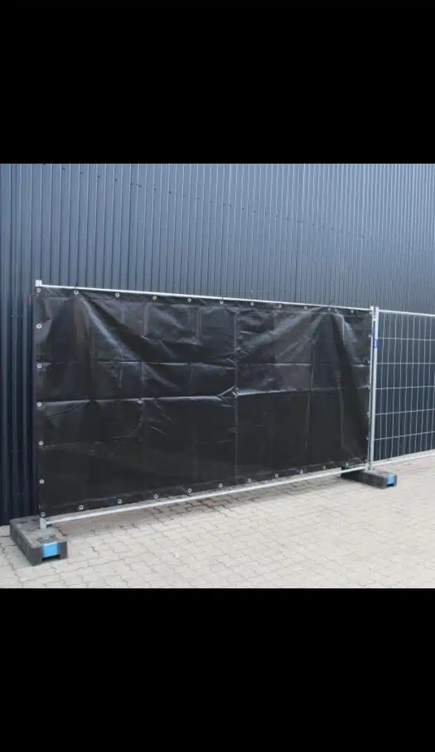 Sort presseningsdug til afskærmning på modulhegn. Dugen er udstyret med forstærket stålring i hvert hjørne til påsætning. (Begrænset antal i hvid.)