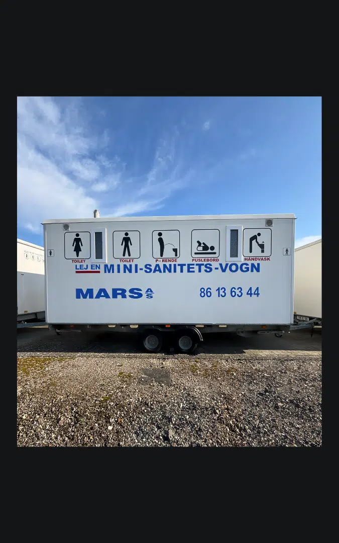 Vores mini toiletvogn er udstyret med 4 vandskylledende toiletter, 2 urinaler og 4 håndvaske. Vognen har 2 indgange og kan inddeles i dame- og herre afdeling med skillevæg eller som unisex. Vognen har derudover indbyggede papirdispensere, håndsæbe dispensere og leveres med papirkurve til papiraffald. Vognen fungerer optimalt ved mindre og middelstore publikumsarrangementer med mindre pres på kapaciteten. Vognen kræver tilslutning til vand, strøm, 110mm afløb indenfor 2m, men kan tilkobles ekstern kværnpumpe, hvilket gør det muligt af tilkoble afløb længere væk (ikke inkluderet i prisen).