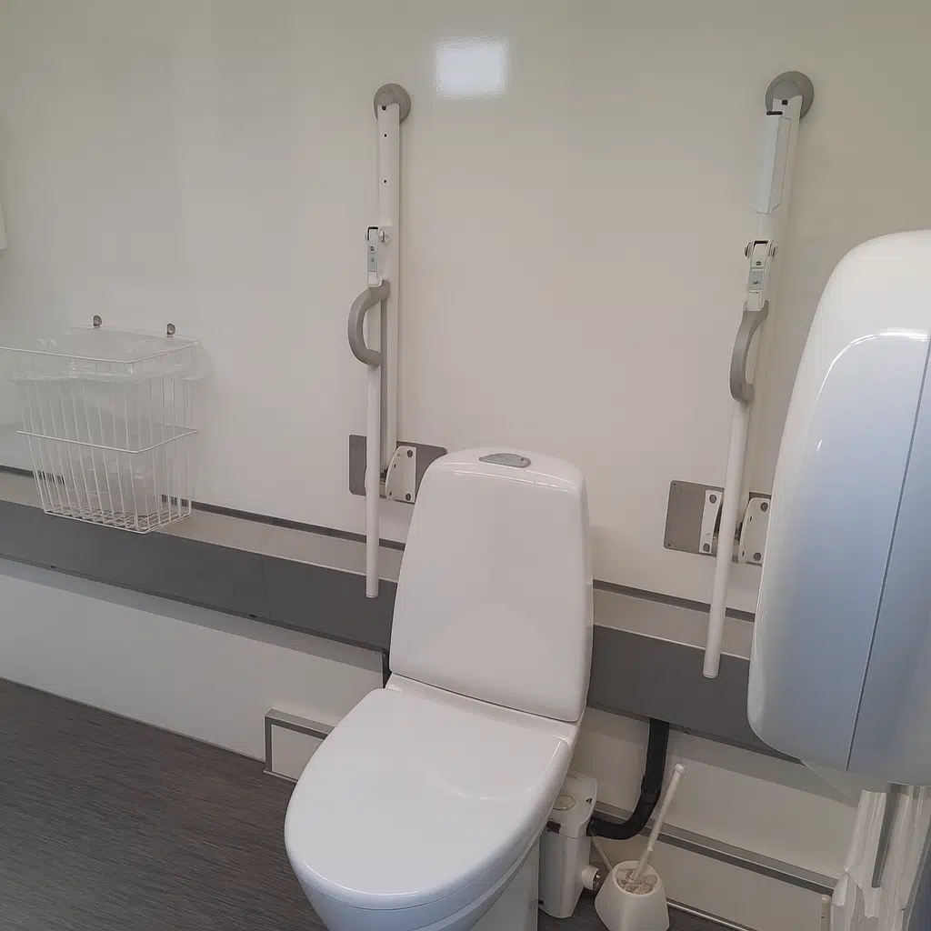 Denne vogn er udstyret med handicap toilet, indbygget brusekabine og håndvask. Derudover er kabinen udstyret med sæbe og papirdispensere. Det er også muligt at få medleveret et mobilt puslebord som kan opstilles af gæsterne efter behov.