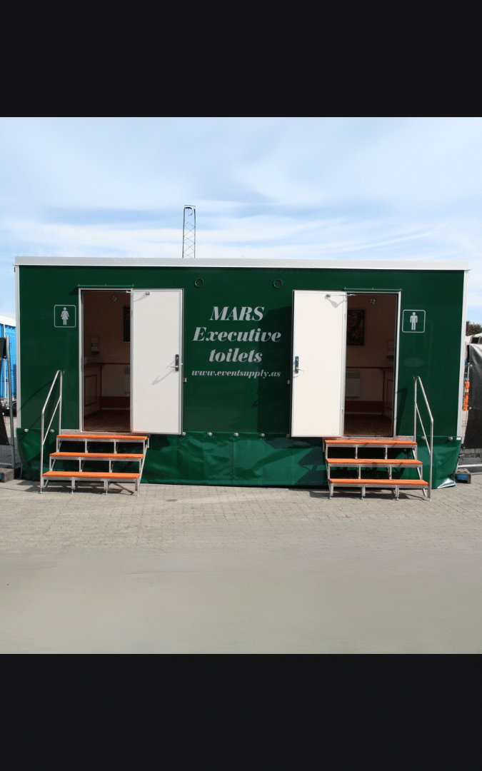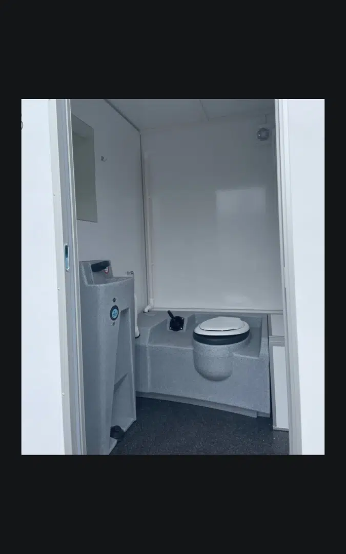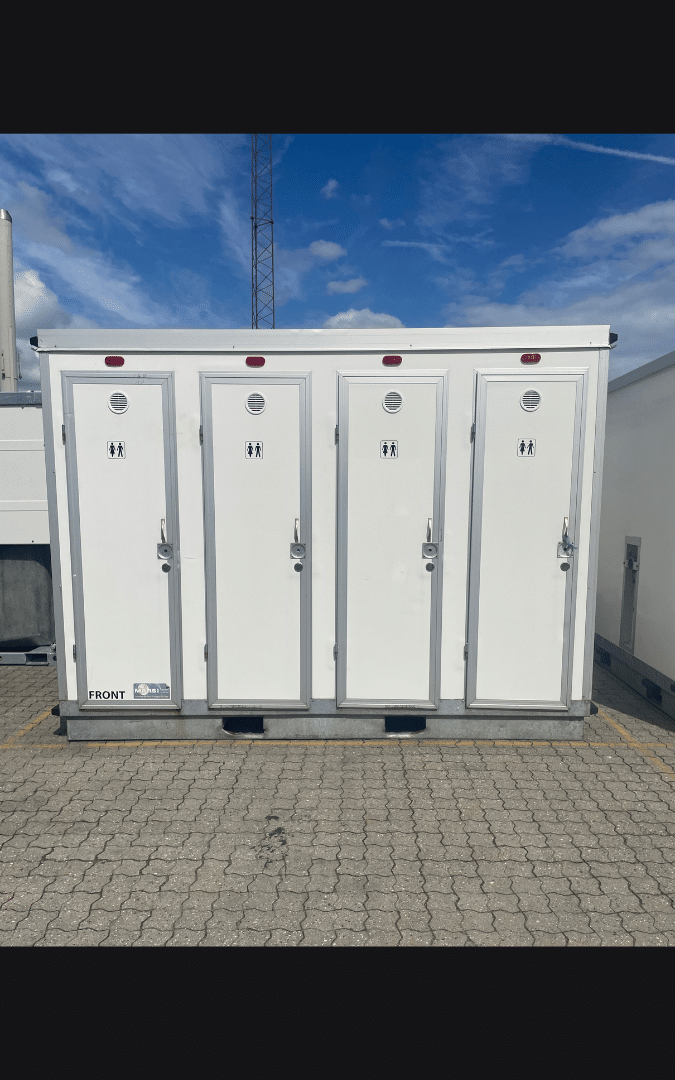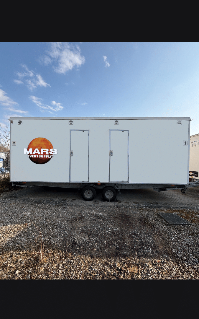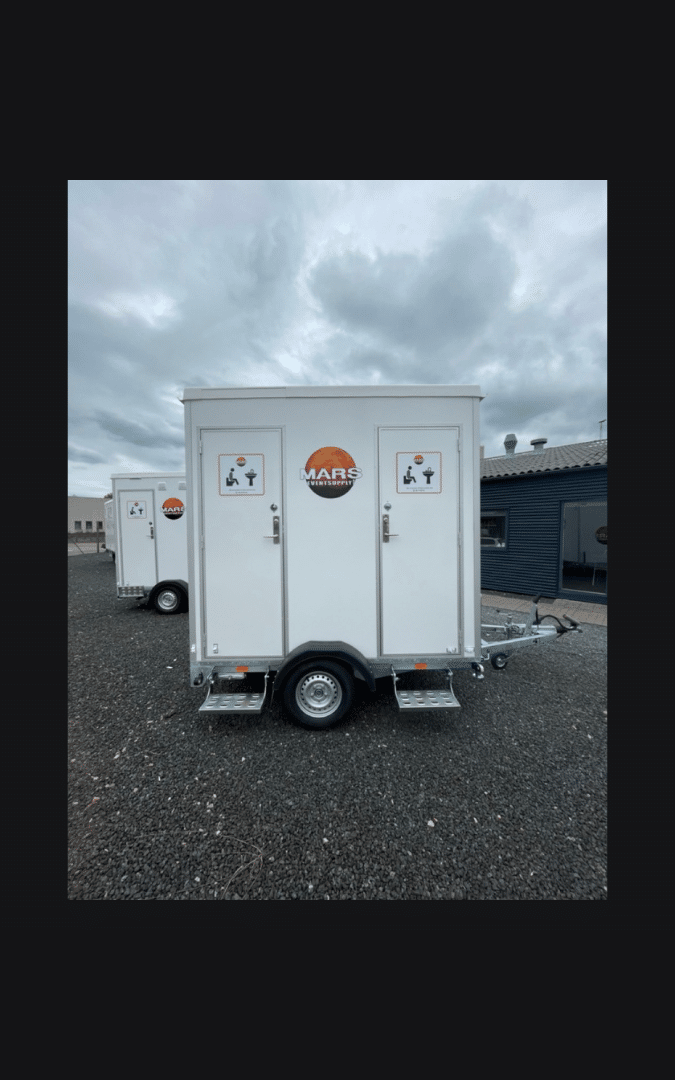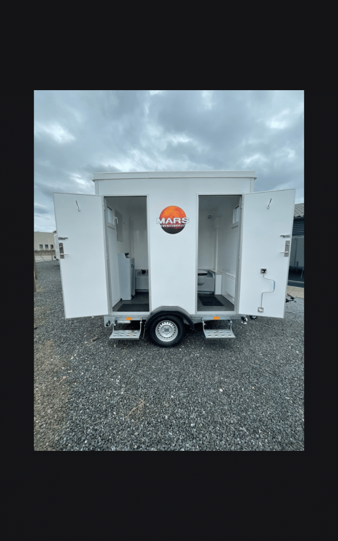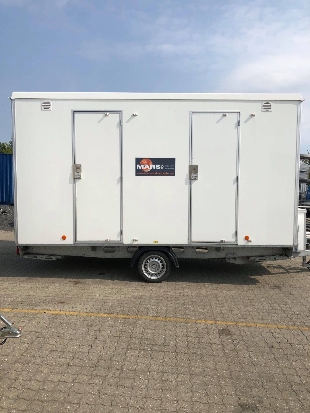 Denne toiletvogn kan ses som et skridt op fra de klassiske blå kabiner på trailer. Den hvide vogn er udstyret med 2 toiletter med tilhørende håndvaske med fodpumpe. Toiletterne har separate indgange udefra med en lille fastmonteret trappe som nemt vippes ned for en enkel opstilling af vognen.