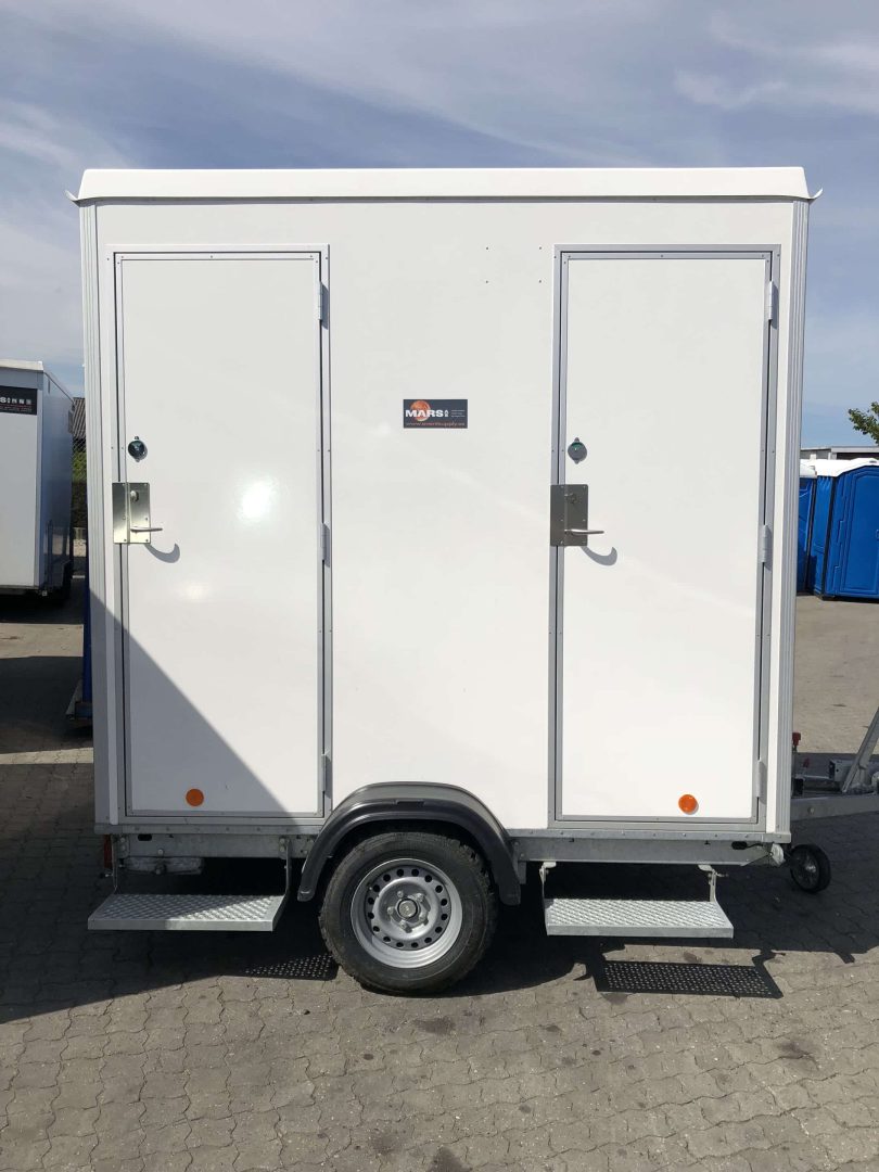 Denne toiletvogn kan ses som et skridt op fra de klassiske blå kabiner på trailer. Den hvide vogn er udstyret med 2 toiletter med tilhørende håndvaske med fodpumpe. Toiletterne har separate indgange udefra med en lille fastmonteret trappe som nemt vippes ned for en enkel opstilling af vognen. Vognen kræver hverken tilslutning til vand eller afløb, men kun strøm til belysning og er dermed en meget enkelt løsning til det mindre arrangement eller privatfesten. Toiletterne er lavet i stil med et klassisk camping toilet med en håndpumpe som udløser skyl med sanitetsvæske og åbning af lille klap ned til opsamlingstanken. Dette betyder at der ikke er tale om en helt åben tank, som på de klassiske blå kabiner.
